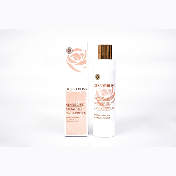Елегантен душ-гел за тяло DESERT BLISS 24 – ЧАСА ХИДРАТАЦИЯ с натурално камилско мляко, розмарин и лек аромат на акация. Камилското мляко от пустинята почитано от бедуините за здрава и сияеща кожа е в комбинация с най-доброто качество масло от кокос и маслина, съчетани с ектракт от розмарин. Почиства и омекотява кожата, спомага за регулиране на минералния и воден баланс. Натуралните съставки подхранват и предпазват кожата на тялото от ежедневния стрес и агресивното въздействие на околната среда. Камилското мляко в съчетание с натурални растителни масла отлично тонизира кожата, осигурява дълготрайна защита с подмладяващо действие. Гел-душ за тяло DESERT BLISS 24 – ЧАСА ХИДРАТАЦИЯ е с богата кремообразна пяна, лесно и бързо се изплаква и при ежедневна употреба придава на кожата гладкост и кадифена мекота. Без синтетични химикали и добавки.