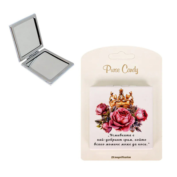 Размер на огледалото /затворено/ - 7,2 см. х 7,2 см. х 1 см.