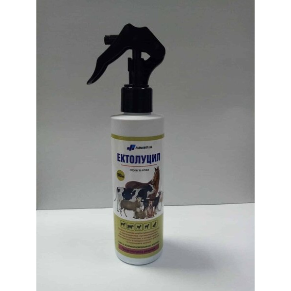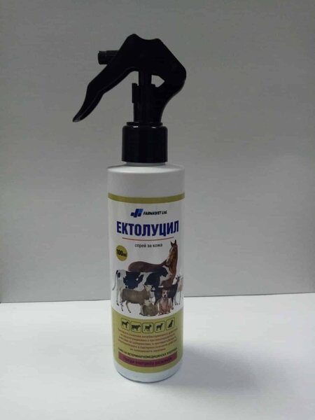 Терапевтични указания: ЕКТОЛУЦИЛ спрей се прилага при миази, при копитен гнилец и др. копитни заболявания; при краста при кучетата.