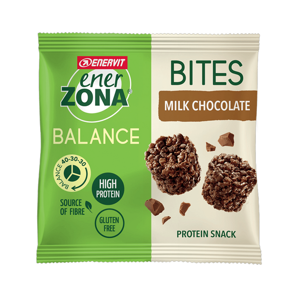 Хапки Млечен Шоколад Закуска със соя и млечен шоколад EnerZona Хапки Млечен Шоколад е безглутенова закуска, богата на протеин и е ценен източник на фибри. Богата на протеин, с фибри Закуска по Зоната Соева закуска без ГМО Без глутен Без хидрогенирани мазнини EnerZona Хапки Млечен Шоколад е безглутенова закуска, направена от соя и млечен шоколад, богата на протеини и фибри. Всяка хапка е балансирана 40-30-30, за да предложи правилния баланс на въглехидрати, протеини и мазнини, нужни за да сте в Зоната, заедно с удоволствието от неповторимия вкус (1 минипакет = 1 блок). Можете да ги вземете със себе си, благодарение на практичната опаковка от единична порция минипакет, която ги поддържа винаги свежи и пресни. Опитайте ги като неустоима закуска между едно или друго хранене, насладете им се на закуска или на път, направете ги перфектния завършек към някое от вашите хранения в Зоната. Опитайте ги и с ванилия или черен шоколад. 40-30-30: процентно разпределение на калории на макронутриенти (въглехидрати, протеини и мазнини). НАЧИН НА УПОТРЕБА Продуктът трябва да се използва като част от разнообразна и балансирана диета и здравословен начин на живот. СЪСТАВ Млечен шоколад (60%) (захар, какаово масло, мляко на прах, какаова паста, суроватка на прах, емулгатор: лецитин (от соя) ванилов екстракт) - Соев протеинов концентрат (20%) - Екструдирана соя (20%) (изолиран соев протеин, тапиока нишесте, сол). Може да съдържа следи от яйца, ядки.
