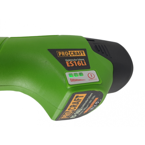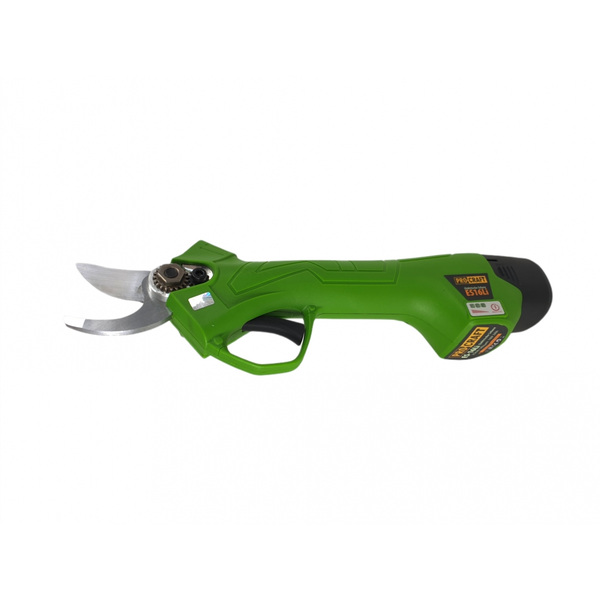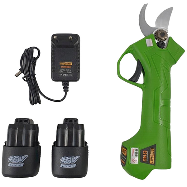 Градинска лозарска акумулаторна безчеткова ножица, пикова мощност 16.8V, две батерии 2Ah, бързо зареждане, продължителност на работа с една батерия 8 часа, заключващ механизъм. \n \nНожовете са изработени от японска стомана. Може да работи с една батерия в продължение на 8 часа. Защита против случайно включване, за старт на работа е необходимо бързо двойно натискане на пусковия ключ. Доставя се в комплект с 2 батерии с капацитет 2Ah, зарядно устройство, специален ключ. \n \nТехнически показатели: \nНоминално напрежение: 16 V \nКапацитет на батерията: 2 Ah \nМаксимални обороти без натоварване: 1000 об./мин. \nВреме за зареждане на батерията: 1 час \nКапацитет на рязане: 25 мм \nОкомплектовка: 2 броя акумулаторни батерии Li-Ion 2.0 Ah Зарядно устройство \n \n(Set)* Включени 2 броя батерии 16V, 2Ah, и 1 брой зарядно.