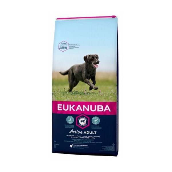 Eukanuba осигурява оптималното дневно количество протеини, мазнини, въглехидрати, витамини и минерали, важни за здравето и благосъстоянието на кучето ви. Тази храна специално включва FlexMobility (система за управление на ставите).
