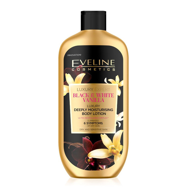 LUXURY EXPERTЛуксозен дълбоко хидратиращ лосион за тялоBLACK & WHITE VANILLAULTRA REVITALIZING COMPLEX ™Елиминира 6-те симптома на сухaта на кожатаСуха и чувствителна кожаЛуксозен дълбоко хидратиращ лосион за тяло BLACK & WHITE VANILLA осигурява професионална грижа за кожата и елиминира 6-те симптома на сухата кожа: грапавост, лющене, сърбеж, чувство на опънатост, отслабена еластичност, зачервяване.КОНЦЕНТРИРАНИ АКТИВНИ СЪСТАВКИ:ЕКСТРАКТ ОТ КРАЛСКА ОРХИДЕЯ, РАСТИТЕЛЕН КОЛАГЕН, КРАЛСКИ ИКЪР И ЕКСТРАКТ ОТ ВАНИЛИЯ, МАСЛО ОТ ШИЙ.ПРИЛОЖЕНИЕ:Всяка сутрин и вечер внимателно втривайте в суха и чиста кожа.