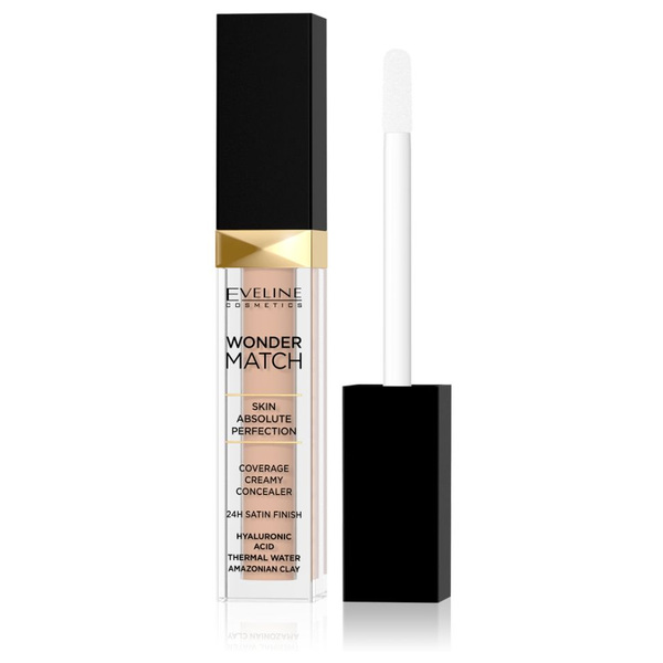 EVELINE ТЕЧЕН КОРЕКТОР WONDER MATCHФормулата съдържа ХИАЛУРОНОВА КИСЕЛИНА и ТЕРМАЛНА ВОДА, за да поддържа кожата хидратирана през целия ден Формулата е лека, почти незабележима върху кожата, но в същото време покриваща – един слой е достатъчен, за да прикрие тъмните кръгове под очите, да покрие несъвършенствата и дори тонуса на кожата.Не се отлага в бръчките и не подчертава сухата кожа, като по този начин кожата е равномерна, изглежда млада и сияйна. Коректорът има класически апликатор