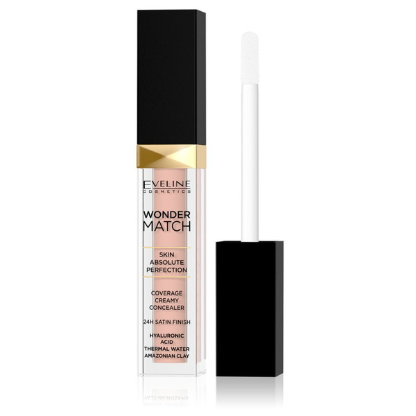 EVELINE ТЕЧЕН КОРЕКТОР WONDER MATCHФормулата съдържа ХИАЛУРОНОВА КИСЕЛИНА и ТЕРМАЛНА ВОДА, за да поддържа кожата хидратирана през целия ден Формулата е лека, почти незабележима върху кожата, но в същото време покриваща – един слой е достатъчен, за да прикрие тъмните кръгове под очите, да покрие несъвършенствата и дори тонуса на кожата.Не се отлага в бръчките и не подчертава сухата кожа, като по този начин кожата е равномерна, изглежда млада и сияйна. Коректорът има класически апликатор