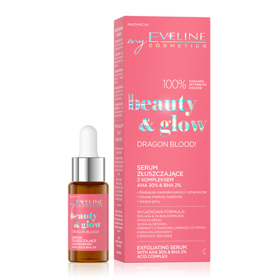 EVELINE BEAUTY&GLOW DRAGON BLOOD! ЕКСФОЛИРАЩ СЕРУМ ЗА ЛИЦЕ С AHA 30% & BHA 2% КИС.КОМПЛЕКС