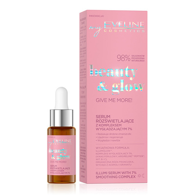 EVELINE BEAUTY&GLOW GIVE ME MORE ОЗАРЯВАЩ СЕРУМ ЗА ЛИЦЕ СЪС 7% ИЗГЛАЖДАЩ КОМПЛЕКС