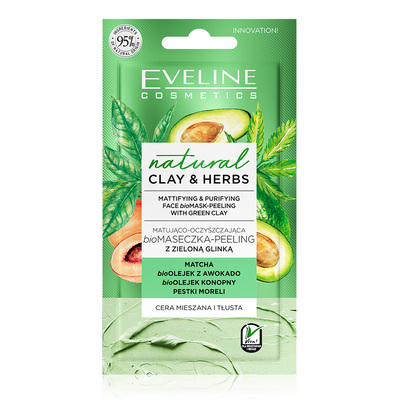 EVELINE NATURAL CLAY&HERBS МАТИРАЩА И ПОЧИСТВАЩА БИО ПИЛИНГ -МАСКА ЗА ЛИЦЕ СЪС ЗЕЛЕНА ГЛИНА