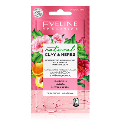 EVELINE NATURAL CLAY&HERBS ХИДРАТИРАЩА И ОЗАРЯВАЩА БИО ПИЛИНГ -МАСКА ЗА ЛИЦЕ С РОЗОВА ГЛИНА