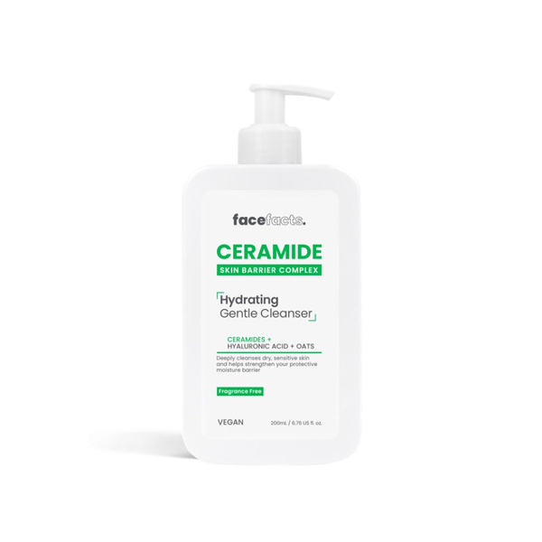 FACE FACTS ПОЧИСТВАЩ ГЕЛ ЗА ЛИЦЕ СЪС СЕРАМИДИ ЗА КОЖНАТА БАРИЕРАБъдете нежни към кожата си с нашия почистващ гел Ceramide. Нашият хидратиращ гел помага за дълбокото почистване дори на най-сухата и чувствителна кожа. Формулиран с нашия бариерен комплекс на кожата от 5 серамиди, заключваща влагата хиалуронова киселина, глицерин и успокояващ кожата овес, той отмива замърсяванията и грима, оставяйки кожата чиста и хидратирана, като същевременно спомага за укрепване на защитната бариера на кожата. Дайте на кожата си допълнителната грижа, която заслужава!