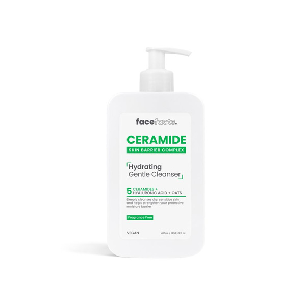 FACE FACTS ПОЧИСТВАЩ ГЕЛ ЗА ЛИЦЕ СЪС СЕРАМИДИ ЗА КОЖНАТА БАРИЕРАБъдете нежни към кожата си с нашия почистващ гел Ceramide. Нашият хидратиращ гел помага за дълбокото почистване дори на най-сухата и чувствителна кожа. Формулиран с нашия бариерен комплекс на кожата от 5 серамиди, заключваща влагата хиалуронова киселина, глицерин и успокояващ кожата овес, той отмива замърсяванията и грима, оставяйки кожата чиста и хидратирана, като същевременно спомага за укрепване на защитната бариера на кожата. Дайте на кожата си допълнителната грижа, която заслужава!