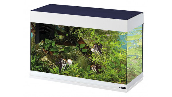 Аквариумът Dubai 80 Led е с капацитет от 125 литра, a дебелината на стъклото e 6 мм. Характеризира се с модерен и изчистен дизайн и гарантира максимална производителност, ниска консумация и лекота на управление. Оборудван е с вътрешен филтър Bluwave 05, способен да осигури чиста и кристална вода. Това е усъвършенствана интегрирана тристепенна филтрираща система (механична, биологична и адсорбентна), пълна с филтърен материал, помпа и нагревател, която също е лесна за поддръжка благодарение на удобните подвижни отделения.LED осветителната система осигурява висока икономия на енергия, отлично цветопредаване с ярки цветове, ефективност и надеждност. В сравнение с консумацията на луминесцентна лампа, LED лампите обезпечават спестяване от 50% с около 30 000 часа светлина! Таймерът за програмиране на осветлението позволява удобно регулиране на продължителността, като може да се използва и в ръчен режим като обикновен превключвател. Аквариумът има специални плъзгащи се врати за монтаж на автоматична хранилка Chef или скимер Bluskimmer. Предлага се в комплект с две 6,5 W LED лампи. В допълнение може да закупите поставка Stand Dubai 80 в различни цветове, която е оборудвана с регулируеми крачета и е специално проектирана да поддържа теглото на аквариума, пълен с вода.