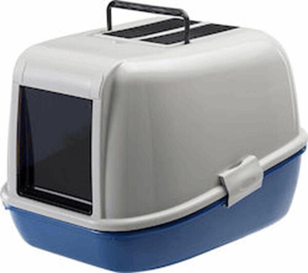 Затворена котешка тоалетна със специална система за почистване със сито.