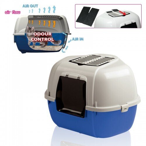 Голяма, затворена тоалетна за котки, с дизайн за лесно поставяне в ъгли.