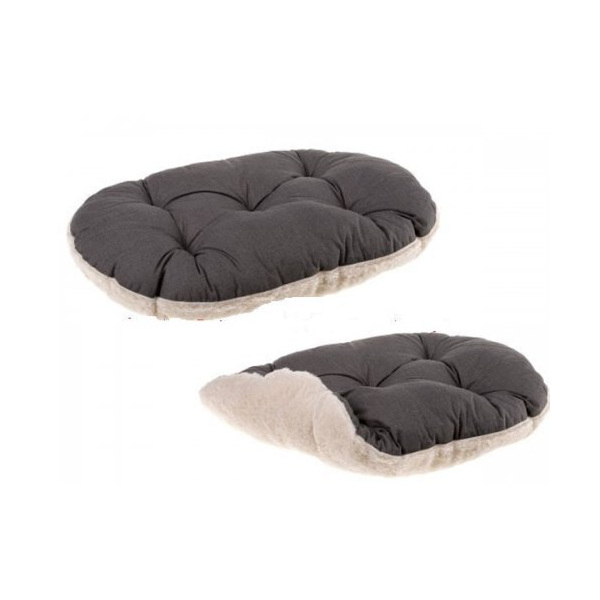 Овален дюшек за кучета и котки, от едната страна от памучен плат, от другата с плюш.