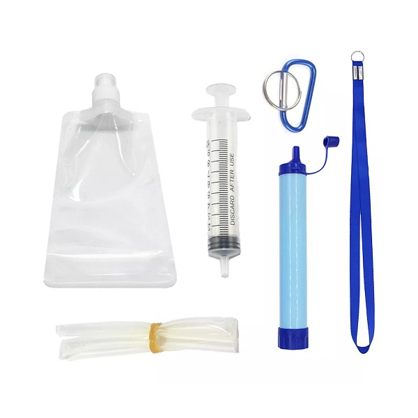 - Лесен за използване и почистване: Поставете сламката във вода, издухайте въздух в сламката и изсмучете вода. Дебитът е около 550 ml/min. Можете да свържете филтъра към бутилки, водни торби или директно към езера, реки, потоци или други водни ресурси.