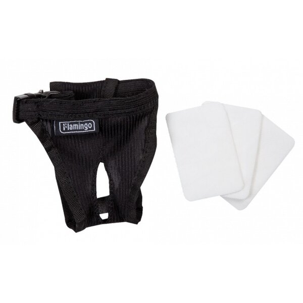 Направени от еластичен материал, могат да се регулират по дължината на вашето куче. Благодарение на тези предпазни гащи вие няма да се притеснявате за вашите мебели и други повърхности, когато вашето куче е разгонено. Винаги използвайте гащите заедно с подложки Flamingo, като ги сменяте по няколко пъти на ден. Подложките допринасят за допълнителен комфорт и хигиенна защита. Предпазните гащи не предлагат контрацептивна защита и трябва да бъдат сваляни при необходимост.