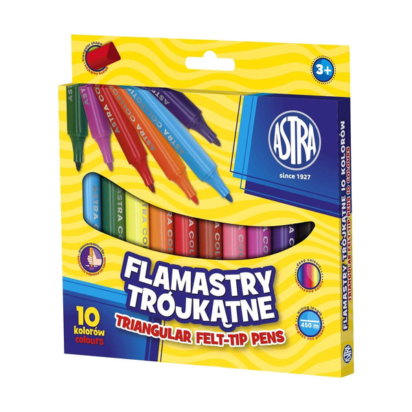 Комплект флумастери, Astra, Jumbo, Триъгълна форма, 10 цвята