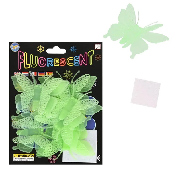 Светещи в тъмното флуорисцентни ПВЦ пеперуди /6 броя/, подходящи за интериор за детска стая.