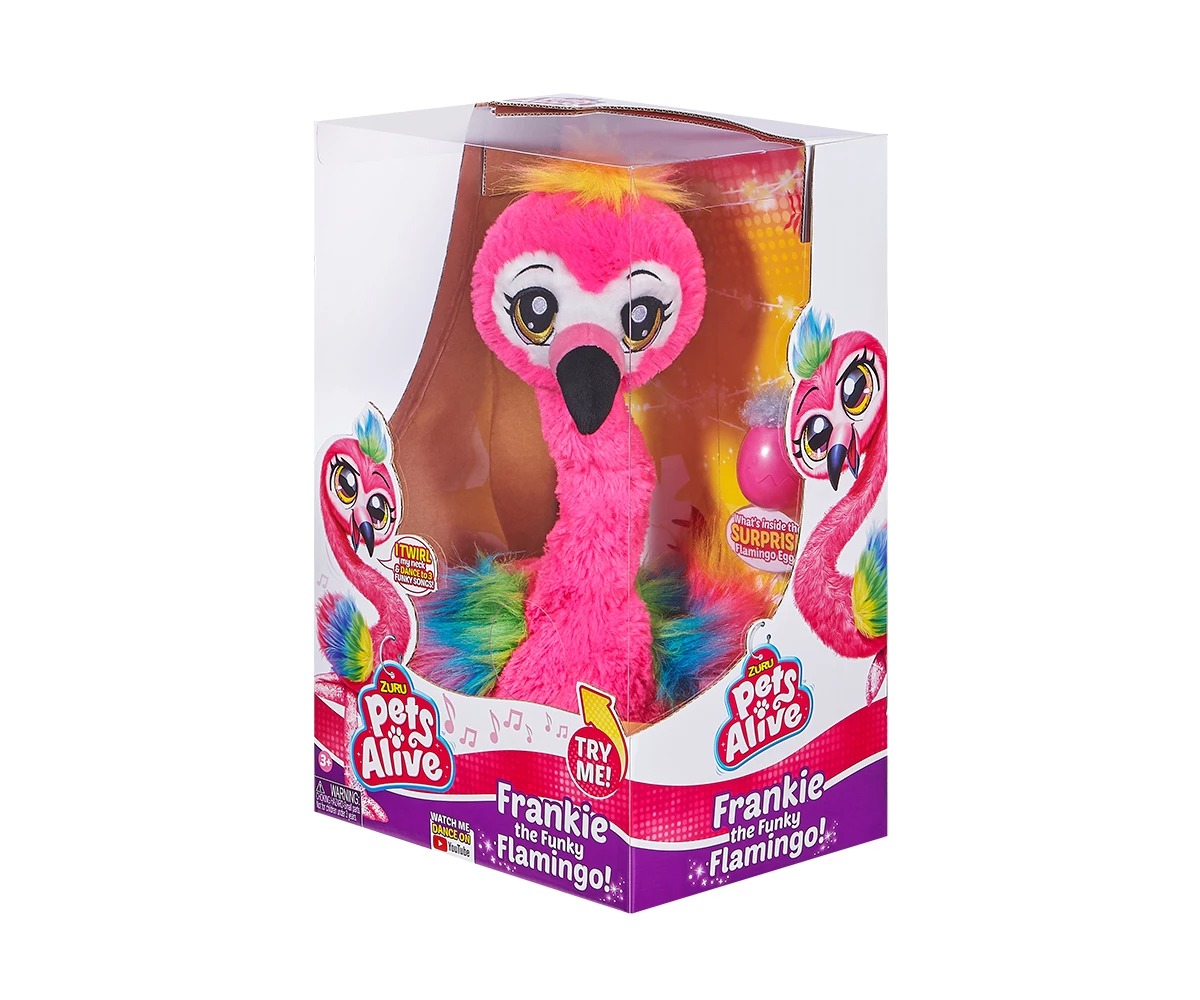 Забавление за цялото семейство: веселите танцови движения и оптимистичната енергия на Франки са безспорно заразни и създават идеалния подарък за приятели и семейство! Предлага се с три песни, с които да танцувате. Роботизираното въртене на врата на Frankie и живите махащи крила със сигурност ще накарат всички да танцуват и да се смеят!