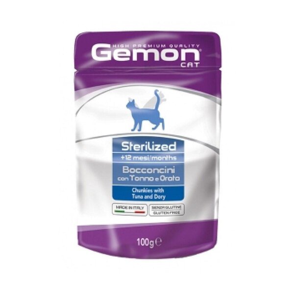Пауч хапки за кастрирани котки в зряла възраст с риба тон и дори - пълноценна храна за кастрирани котки на възраст над 1 година. Формула с прясна риба с отличен вкус. Без глутен.