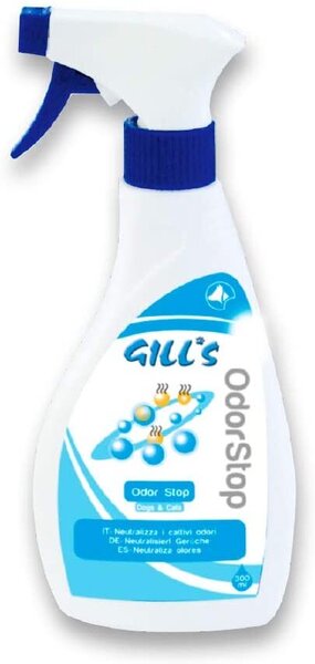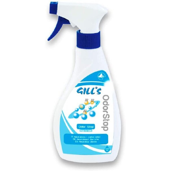 Gill's Odorstop for Pets със специалните си дезодориращи молекули не просто прикрива лошите миризми, а ги улавя и премахва трайно. Той помага за борба с неприятните миризми от екскрементите и не е вреден за животното.