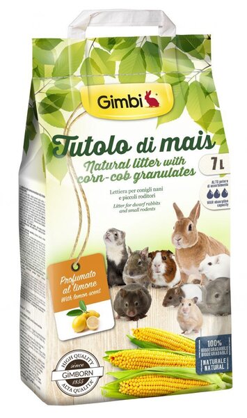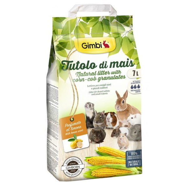 Царевичната постеля за гризачи с аромат на лимон е натурална постеля, направена от растителни гранули от царевичен кочан, които имат изключително високо ниво на абсорбация на течности и задържат ефективно неприятната миризма.