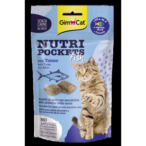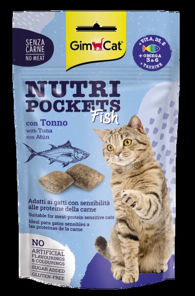 Вкусни хрупкави джобчета с риба тон, естествен източник на омега 3 и 6 мастни киселини. Идеална алтернатива на безмесен хранителен режим, особено подходящи за котки, чувствителни към протеина в месото. С добавени витамини A, D3, E и таурин, които подобряват общото състояние на организма и укрепват жизнеността.