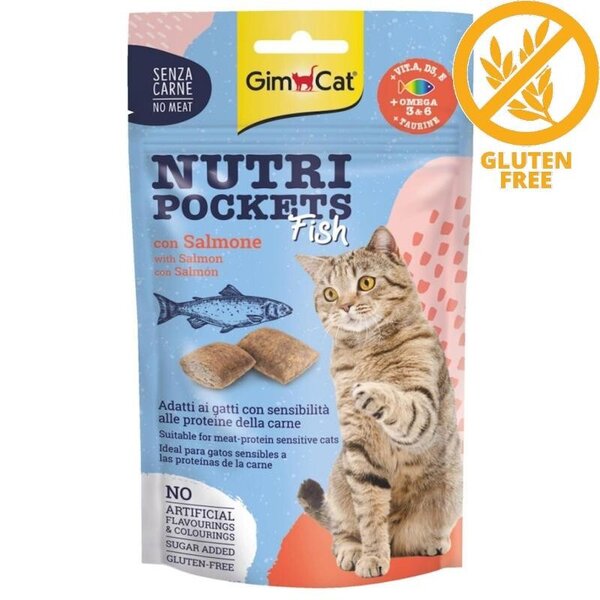 Вкусни хрупкави джобчета със сьомга, естествен източник на омега 3 и 6 мастни киселини. Идеална алтернатива на безмесен хранителен режим, особено подходящи за котки, чувствителни към протеина в месото. С добавени витамини A, D3, E и таурин, които подобряват общото състояние на организма и укрепват жизнеността