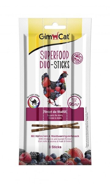 GimCat Superfood Duo-Sticks - Саламена пръчица с пилешко месо и вкус на горски плодове - 3 бр.
