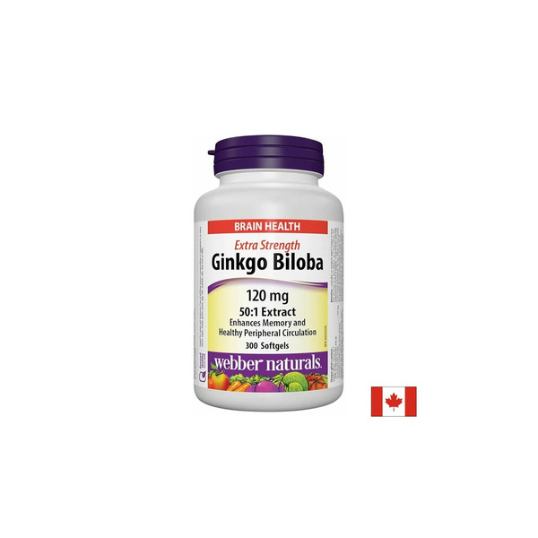 Гинко билоба Extra Strength на канадската марка Webber Naturals е натурален продукт спомагащ за подобряване оросяването на мозъка и крайниците.