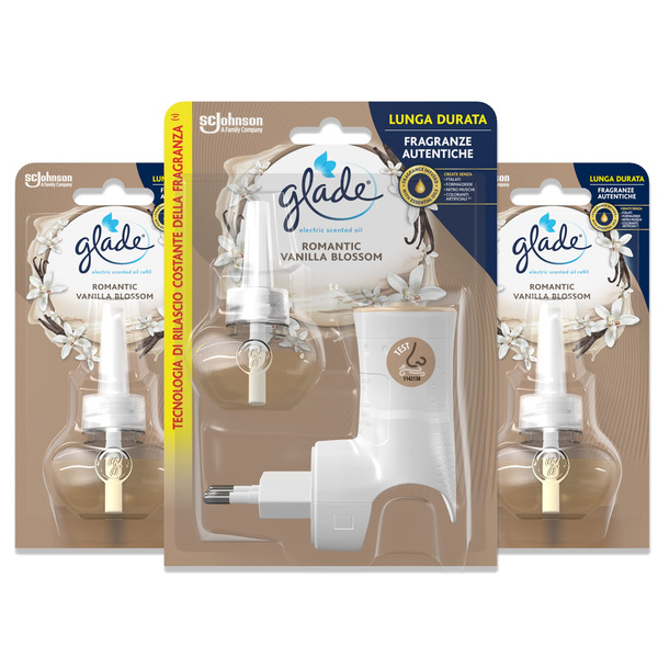 Glade Electric Air Freshener Vanilla Blossom – електрически ароматизатор с база и 3 пълнителя Дълготраен аромат за дома с регулируема интензивност и нежни нотки на ванилия Glade Electric Vanilla Blossomе електрически ароматизатор за въздух, създаден да осигури постоянна свежест и уют в дома. Комплектът включва електрическа база и три рефила, които гарантират дълготрайно ароматизиране на помещението. Ароматът Vanilla Blossom съчетава мека ванилия с цветни и леко дървесни нотки, създавайки балансирано, приятно и модерно усещане за чистота и комфорт. Основни характеристики: Комплект: 1 електрическа база + 3 рефила Аромат: ванилия, цветни и дървесни нотки Регулируема интензивност на аромата Дълготраен ефект за продължителна свежест Подходящ за всякакви помещения