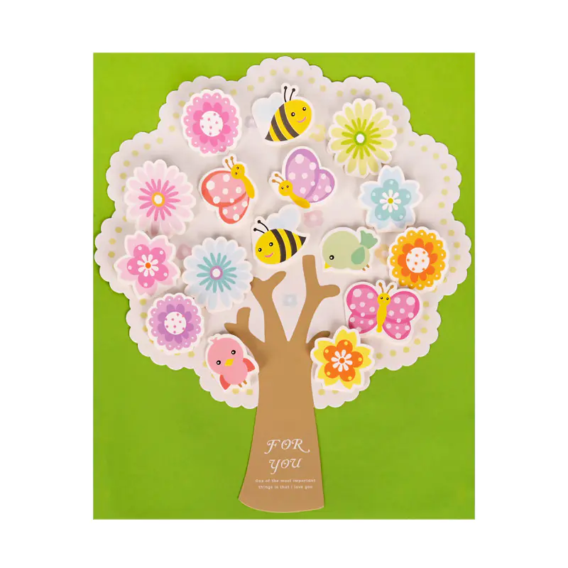 С двойно залепящите елементи може да залепите мини картичките върху картичката Дърво.