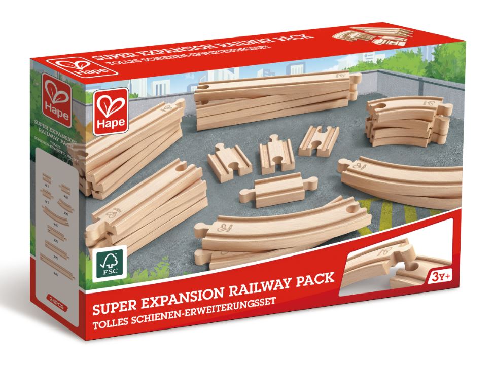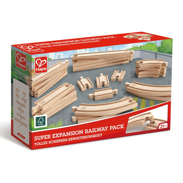 Дървен железопътен комплект, Hape, Голямo разширение на жп линии, 24 части