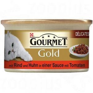 Ето защо GOURMET® Gold създаде вкусни рецепти, за да задоволи изтънчения вкус на Вашето коте с всяко едно ястие. Крехки хапки, комбинирани с внимателно сготвени парченца: идеалната комбинация от две различни текстури в едно хранене, за да предложи на Вашето коте удоволствието от от нежната комбинация от вкусове и текстури. Двойно удоволствие от GOURMET® Gold, голямо разнообразие от вкусни рецепти за различни вкусни моменти всеки ден.