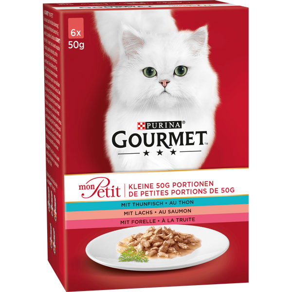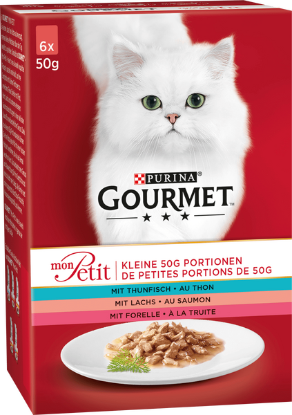 GOURMET® MON PETIT е гама от изискани рецепти, специално разработени, за да позволят на котката Ви да се наслади на голямо разнообразие от вкусове в правилния размер от 50g.