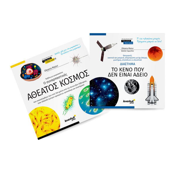 <p>Космос. Микросвят. Образователна книга“ в 2 тома е чудесна възможност детето да се запознае с две вълнуващи науки едновременно.</p><table><tbody><tr><td>Марка</td><td>Levenhuk, Inc., USA</td></tr><tr><td>Гаранция</td><td>2 години</td></tr><tr><td>EAN</td><td>5905555008486</td></tr><tr><td>Размер на опаковката (Д x Ш x В)</td><td>20x20x1 cm</td></tr><tr><td>Транспортно тегло</td><td>0.44 kg</td></tr><tr><td>Приложение</td><td>за деца, за ученици и студенти</td></tr><tr><td>Тип на изданието</td><td>книга</td></tr><tr><td>Носител за съхранение на данни</td><td>печатно издание</td></tr><tr><td>Формат, cm</td><td>20x20</td></tr><tr><td>Книги</td><td>2</td></tr><tr><td>Корица</td><td>с меки корици</td></tr><tr><td>Страници</td><td>“Невидимият свят”: 98, “Космос. Непразна празнота”: 146</td></tr><tr><td>Език</td><td>гръцки</td></tr><tr><td>Издателска къща</td><td>Levenhuk Press</td></tr><tr><td>Серия</td><td>“Толкова далеч, и толкова близо”</td></tr><tr><td>Автор</td><td>Д. Савчин, О. Мазур</td></tr><tr><td>ISBN</td><td>„Невидимият свят“: 978-1-945581-59-5, „Космос. Непразна празнота“: 978-1-945581-48-9</td></tr></tbody></table>