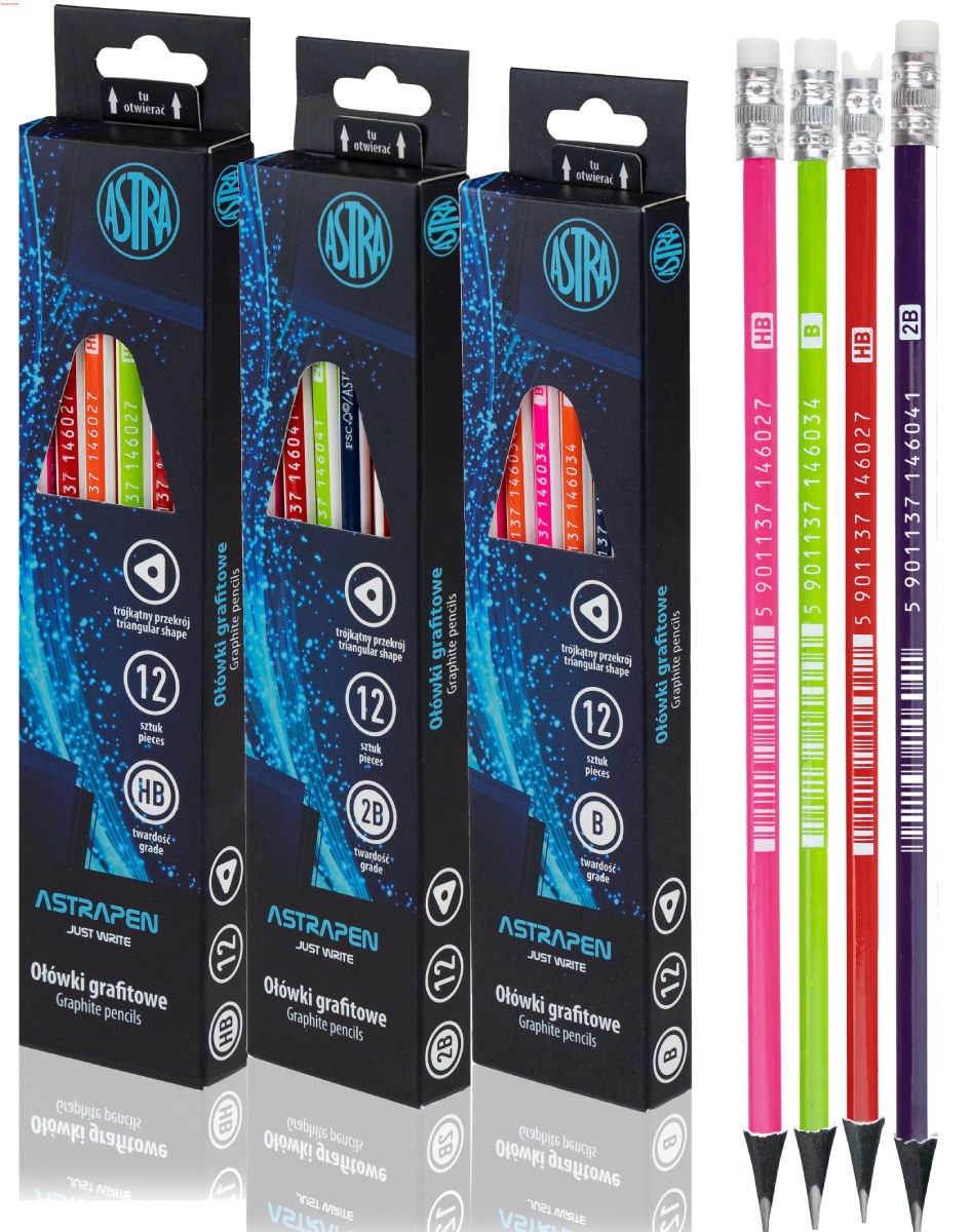 Графитен молив, Astra, HB, С гума, Черно дърво