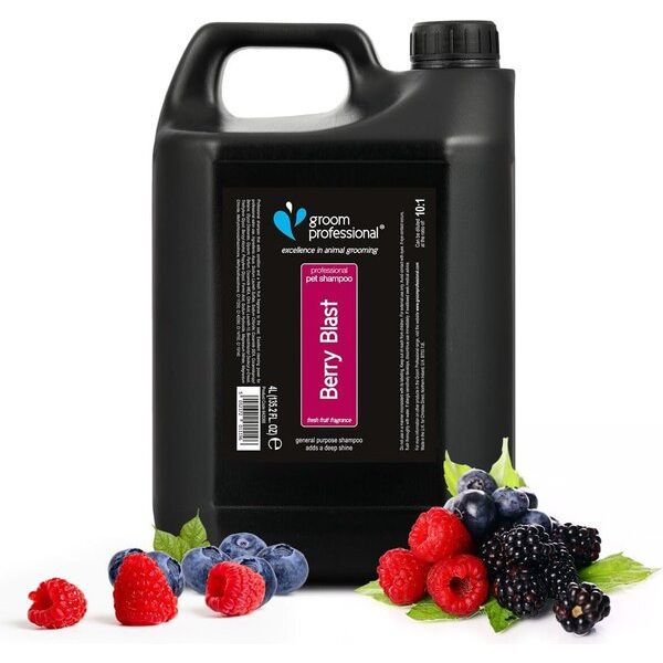 Шампоанът Groom Professional`s Berry blast е мощен дълбоко почистващ, избистрящ шампоан, който премахва всички следи от мръсотия, мазнини и натрупване на продукти.