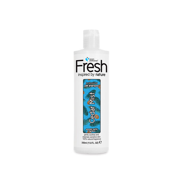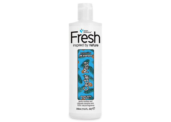 Потопете вашия домашен любимец в спокойствието на кедрова гора с шампоана Groom Professional Fresh Cedar Mist. Част от ексклузивната "Fresh" серия, този шампоан е създаден със 100% натурален аромат, извлечен от етерични масла. Успокояващият дървесен аромат на кедър и ветивер не само премахва неприятните миризми, но и допринася за едно по-релаксиращо изживяване по време на баня.