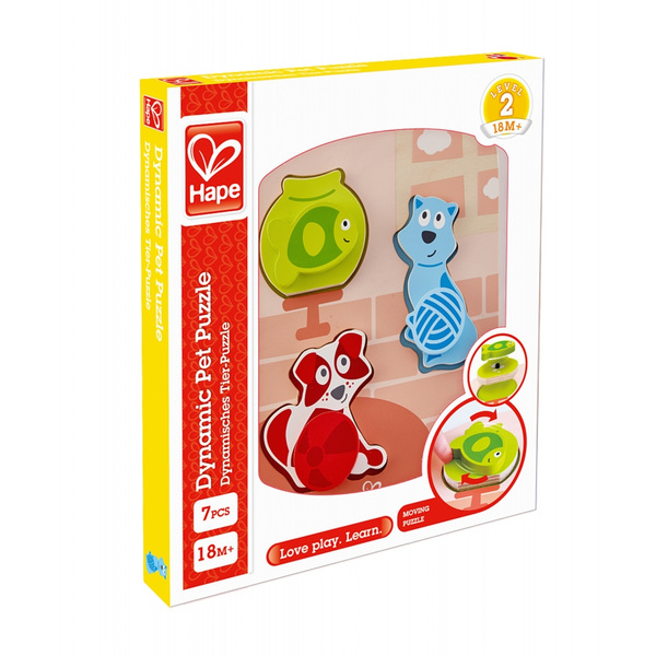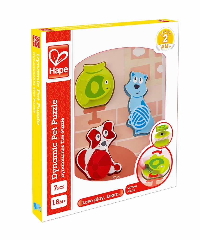 Дървен пъзел с въртящи се елементи, Hape, Домашни любимци, 7 части
