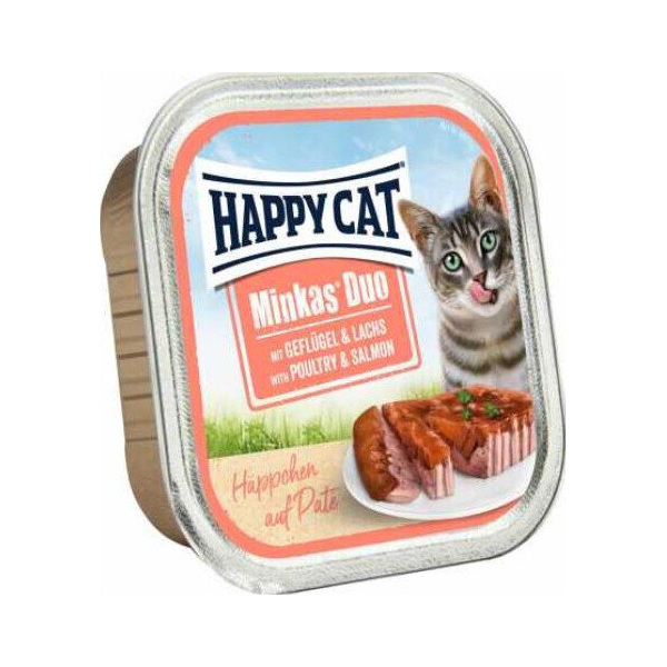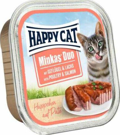Кутийките Happy Cat Minkas Duo съдържат вкусен пастет, който кара сърцата на котките да бият по-бързо.