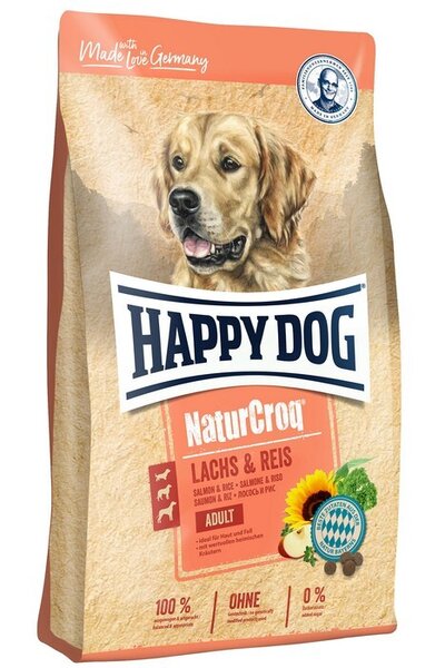 Happy Dog NaturCroq Lachs & Reis (сьомга и ориз) е пълноценна суха храна за възрастни кучета.