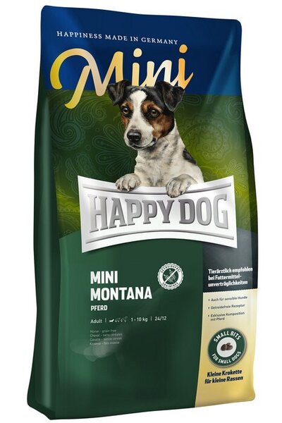 Със своята деликатна и изключителна рецепта, изработена от конско месо и картофи, супер премиум храна за кучета Happy Dog Mini Montana е идеален не само за кучетата от малки породи, но и за чувствителни кучета с деликатни кореми. Със своя необичаен източник на протеини, тази суха храна е идеална за кучета с непоносимост към определени храни, както се препоръчва от ветеринарите. Рецептата без зърно и без глутен е лесна за усвояване и пълно усещане за вкус.