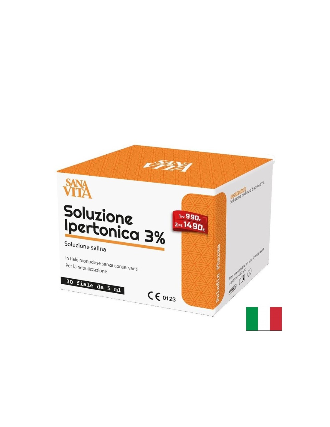 SanaVita Soluzione Ipertonica, от италианската компания Paladin Pharma представлява хипертоничен разтвор 3% , за небулизация, разпределен в 30 фалкона по 5 мл, без консерванти. Действа чрез различни механизми, които улесняват движението на секретите от дихателните пътища, подобрявайки дишането. Подходящ особено като деконгестант при настинки, запушен нос, синузит, ринит, струпеи, както и след операция на носа.
