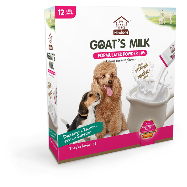 Сухо мляко за кучета HOWBONE Goat's milk e богато на хранителни вещества.Консултирайте се с ветеринар преди употреба. Не е за човешка консумация. Да се държи далеч от деца.