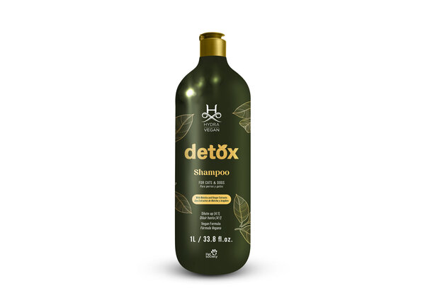 Hydra Vegan Detox Shampoo е концентриран (4:1) веган шампоан за кучета и котки (над 8 седмици), който нежно почиства, детоксикира и хидратира козината с екстракти от матча и джинджифил.