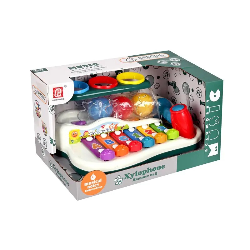 Детето трябва да подреди топчетата по цветове, а след това да удря по тях и те да възпроизвеждат звуци като се търкалят.