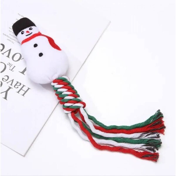Снежният човек е изработен от памучно въже и висококачествен плюш има и вграден механизъм, който издава звук и приканва за игра.
