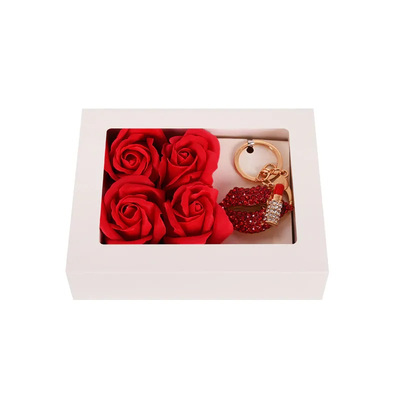 Kомплект с метален ключодържател с камъни и 4 сапунени рози